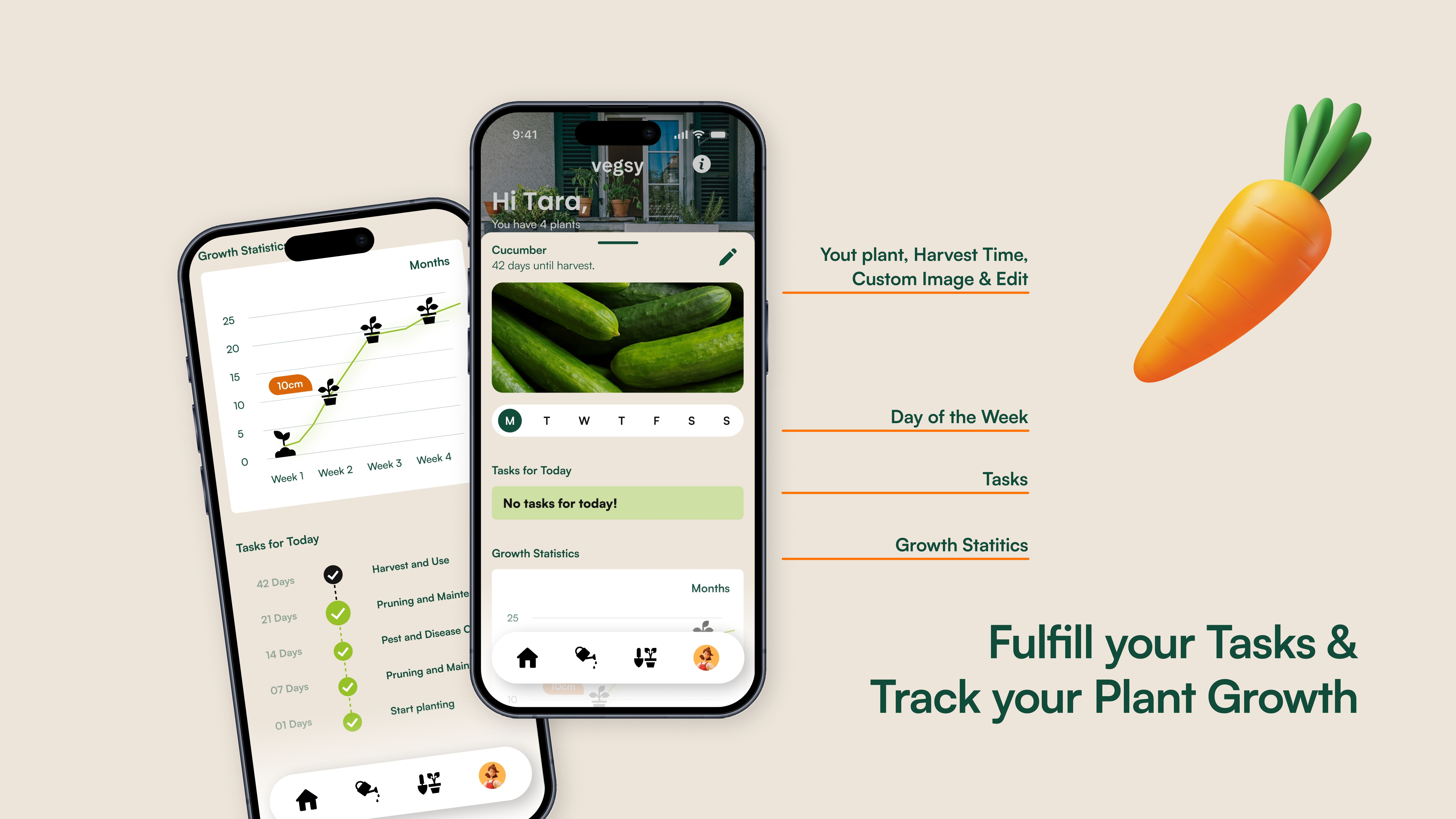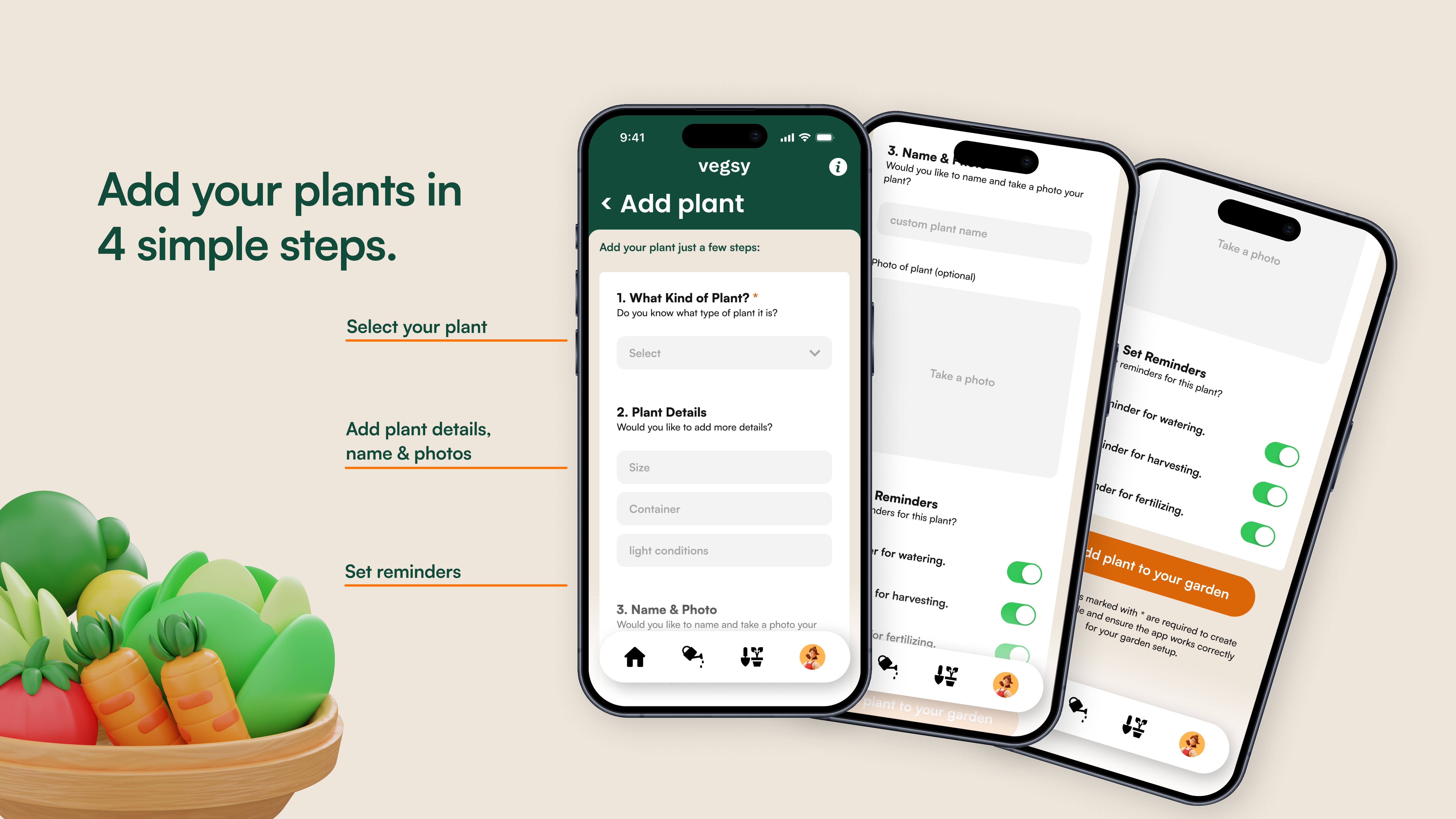 The app replaces the complexity of gardening with an intuitive, visual-first interface. From a smart plant-care calendar that tracks watering and fertilization to seasonal expert tips, every feature is designed to ensure success for first-time growers. By combining functional utility with motivational community challenges, Vegsy makes the journey from "balcony to kitchen" both simple and social.